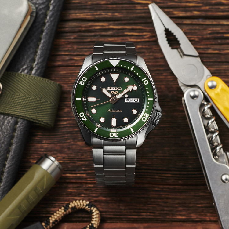 نمایش تاریخ/ذخیره انرژی/عقربه شب نما/نمایش موتور ساعت/دارای قاب چرخشی یک طرفه/دارای ۲۴ قطعه جواهر کار شده در موتور
