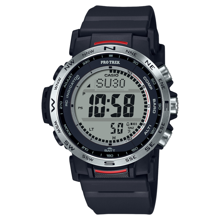 سایر ویژگی ها : مناسب برای کمپینگ و کوهنوردی قابلیت تشخیص مسیر (GPS)، اندازهگیری دما، ارتفاع و فشارهوا عمر باتری 6 ماه: استفاده عادی و اگر در معرض نور نباشد عمر باتری 22 ماه: زمانی ساعت در تاریکی و حالت ذخیره انرژی است - حالت استندبای